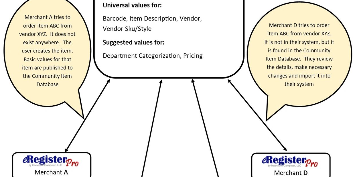 It contains universal information collected from participating eRegisterPro users, such as barcode, item description, vendor and vendor sku/style. This new feature allows users to more-easily add new items to their POS by communicating information to and from the Community Item Database.